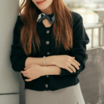 首元をすっきりと見せてくれる旬なバンドカラーもポイントです。