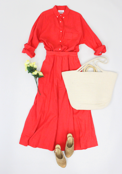 夏だから派手色にトライ!存在感のあるレッドのドッキングワンピース2019.5.17 -