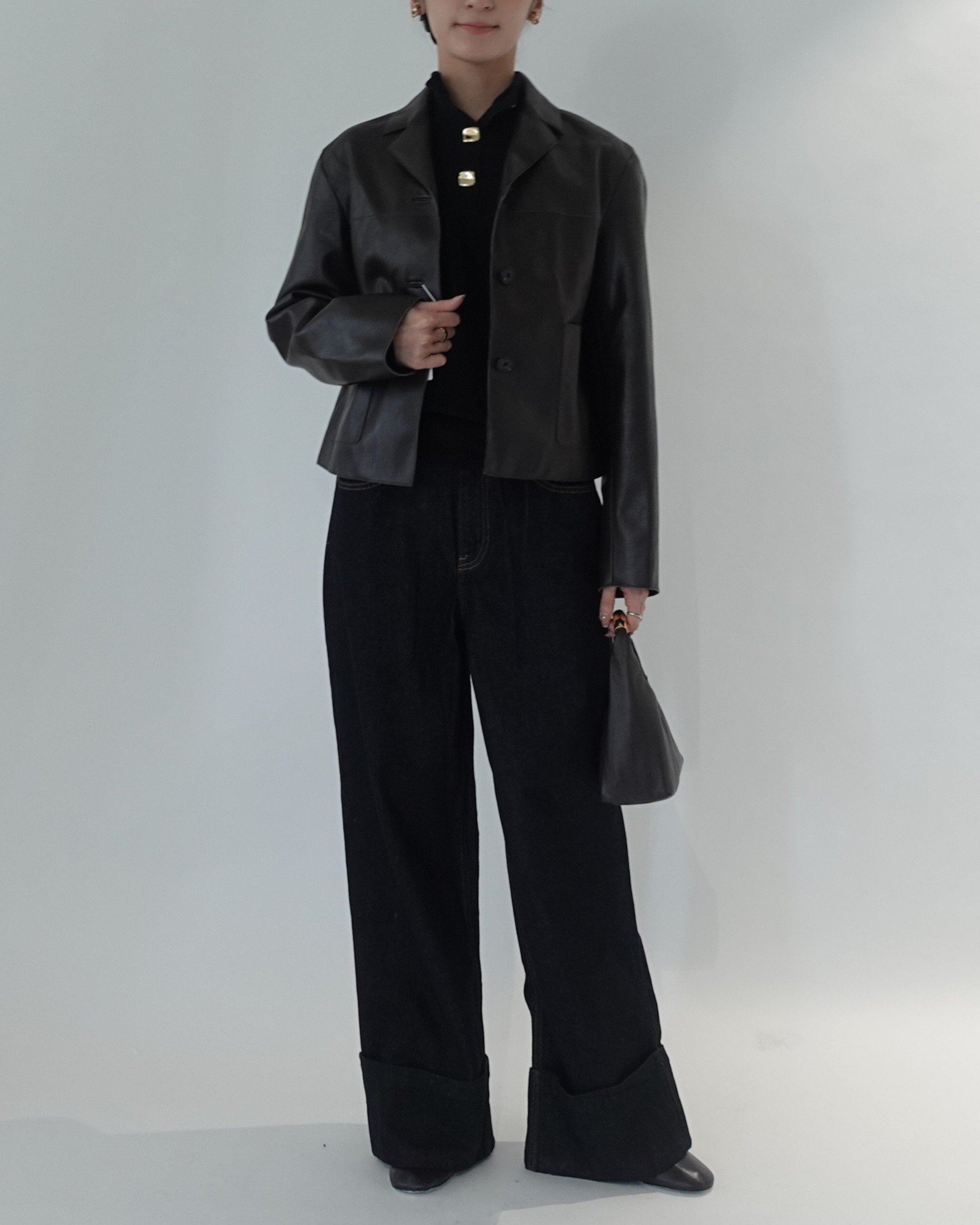 No2.洗練ワイドデニム×レザーの装い