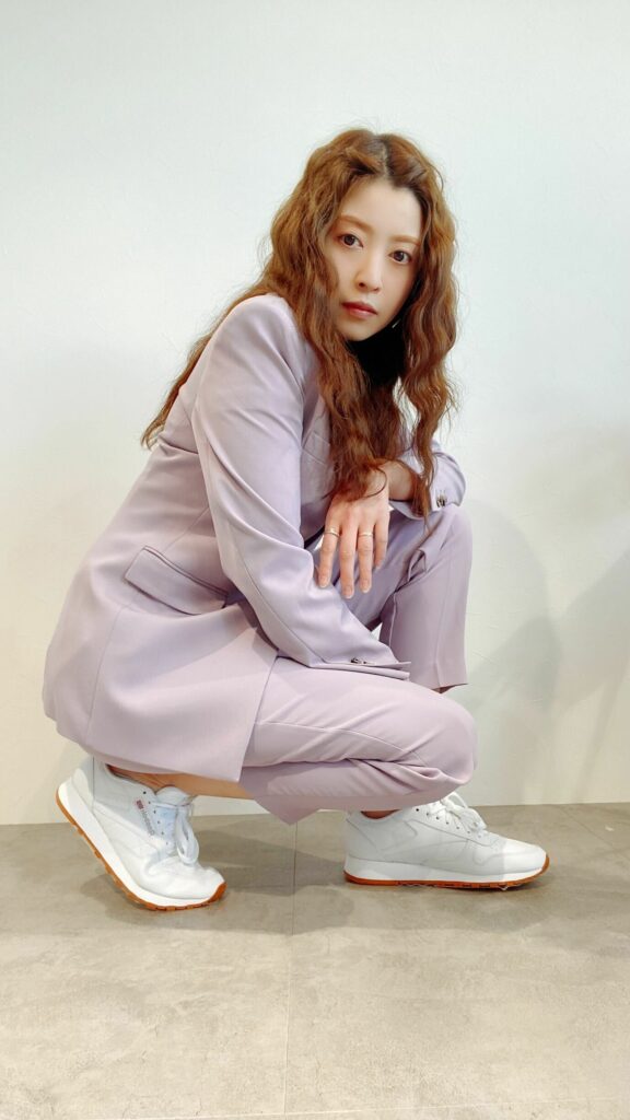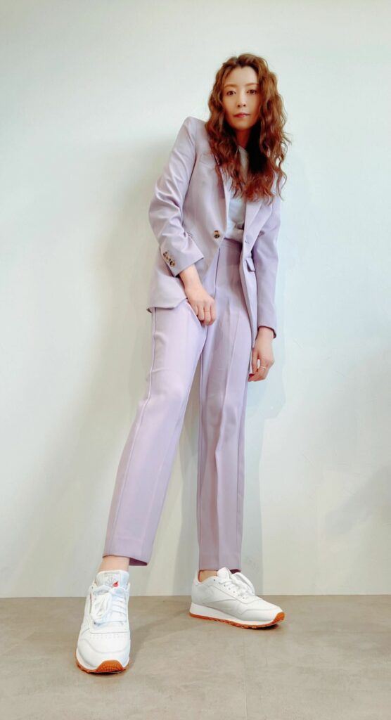 パステル気分だった今日は、明るく柔らかなパープルのセットアップをチョイス。