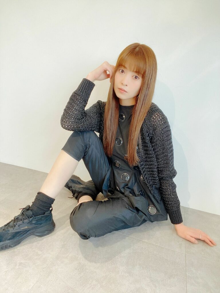 大好きなブランドTOGAのオールインワンを軸にカーディガンを羽織り、足元はデザイン性高いカーディーBのスニーカーをチョイス。