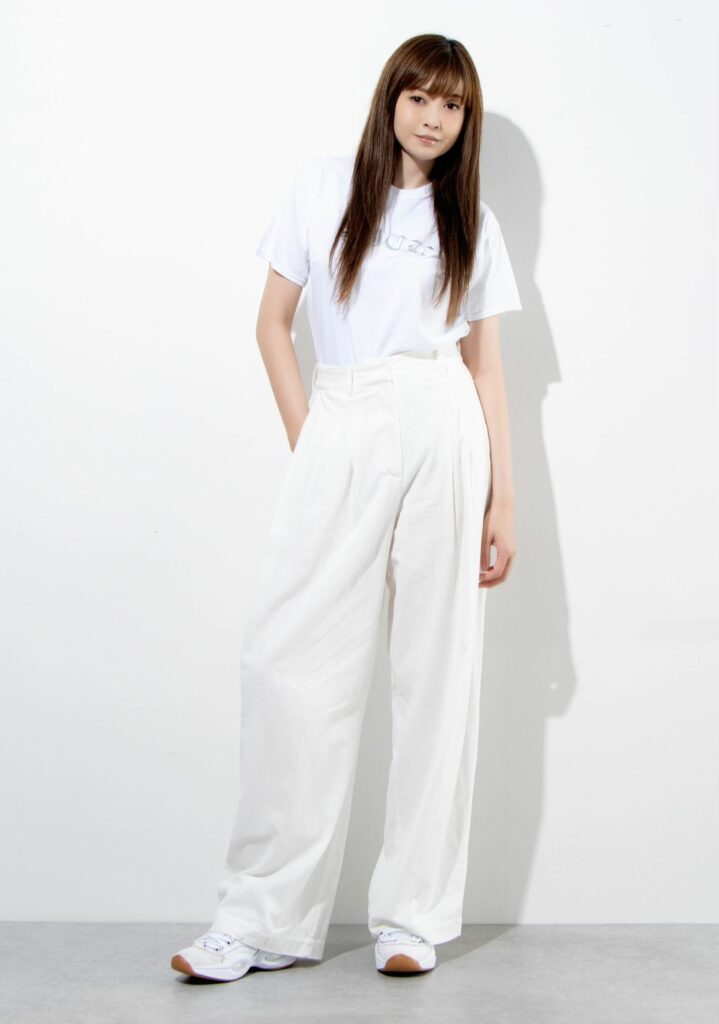 パンツのコットンとリネン素材で抜け感を出し、足元はバッシュでボリュームをつけると脚長に見えるのでオススメです。