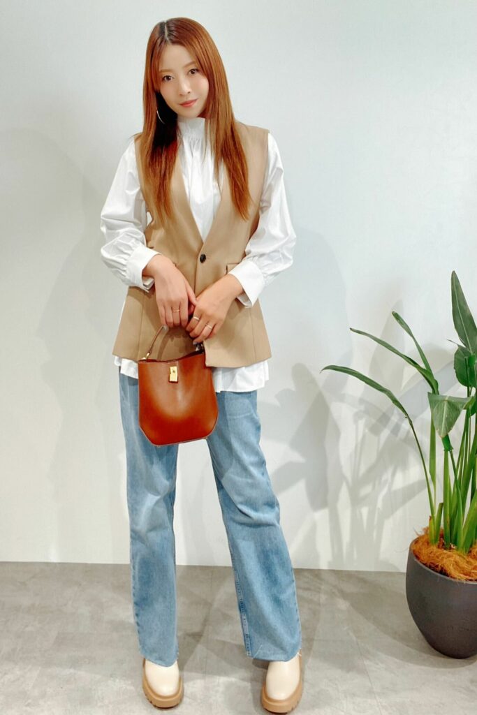 今日はベージュの気分でアンクリードの白ブラウスにジレを合わせて、パンツはワイドめな明るいジーンズとベージュブーツでカジュアルな気分でコーデしてみました。今の季節にぴったりですし、今お得に買えるのでぜひチェックしてみてください。