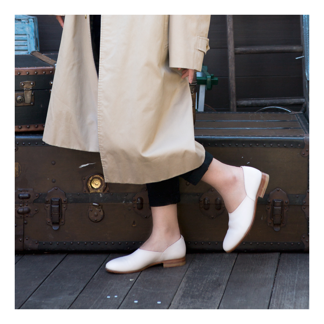脱ぎ履きはしやすいけどカジュアル過ぎないフラットシューズがオススメ。