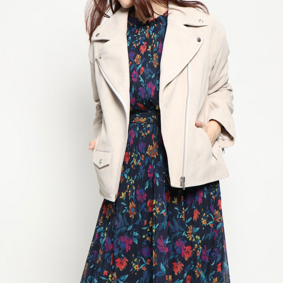 夜遅くにはならなくても、夕方からそこそこ冷え込んできます。淡い色味のライダースジャケットがピッタリ。