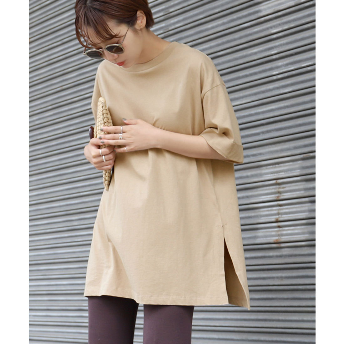 腰の位置よりも丈が長いトップスを選べば、ウエストやお尻周りを上手に隠せます。