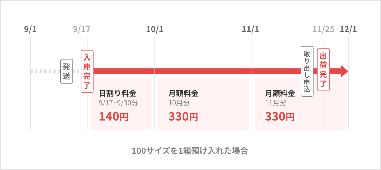 ※入庫した月の月額保管料は「日割り料金」が適用されます。