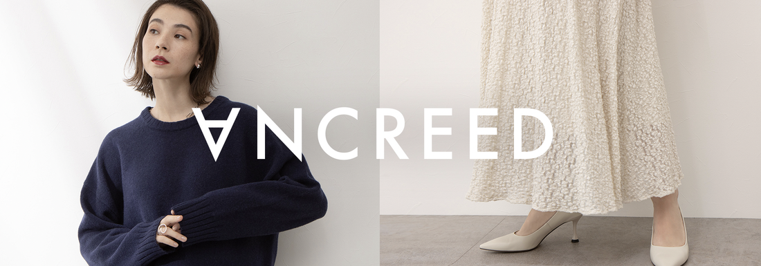 ANCREEDはフランス語で「錨 (いかり)」を意味するANCRE、英語で「信条」を意味するCREEDの2つの言葉から生まれました。波に流されず強く船を支える錨のように、トレンドに流される事なく長年着られる上質でシンプルなデザインを核としつつ、それぞれの時代における個々人の多様な信条や価値観をデザインに反映する事で、トレンドやユニークネスも表現できるコレクションを展開しています。
